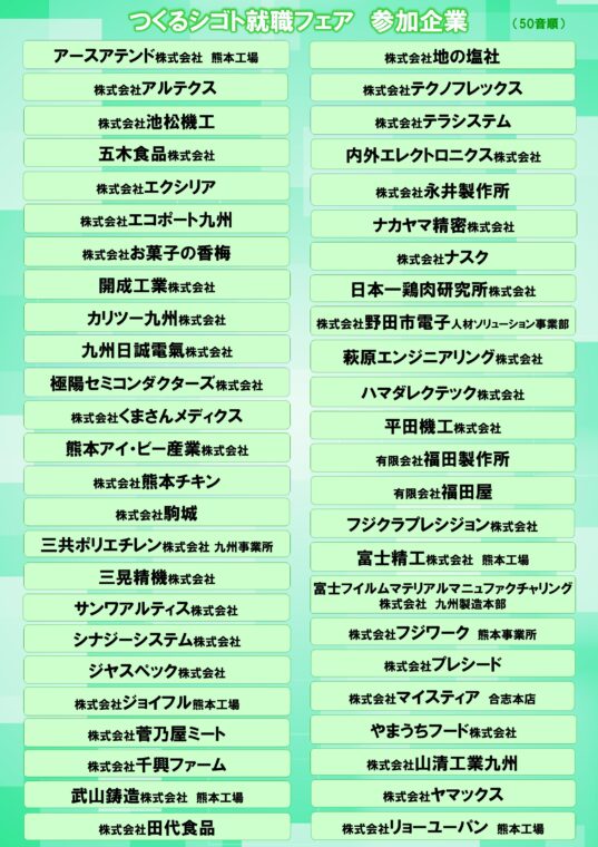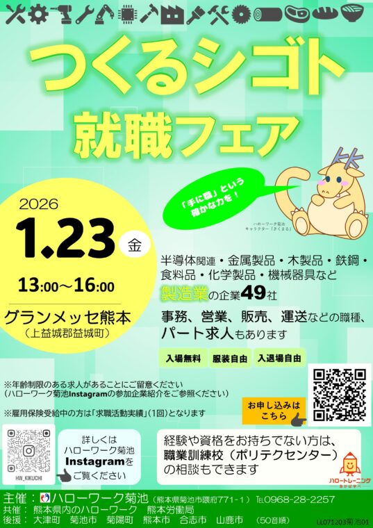 ハローワーク菊池主催の「つくるシゴト就職フェア」が開催されます。